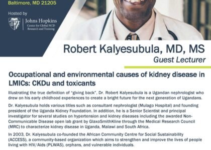 Guest Lecturer: Robert Kalyesubula, MD, MS as a Guest Lecturer Date: 9th August 2019, John Hopkins